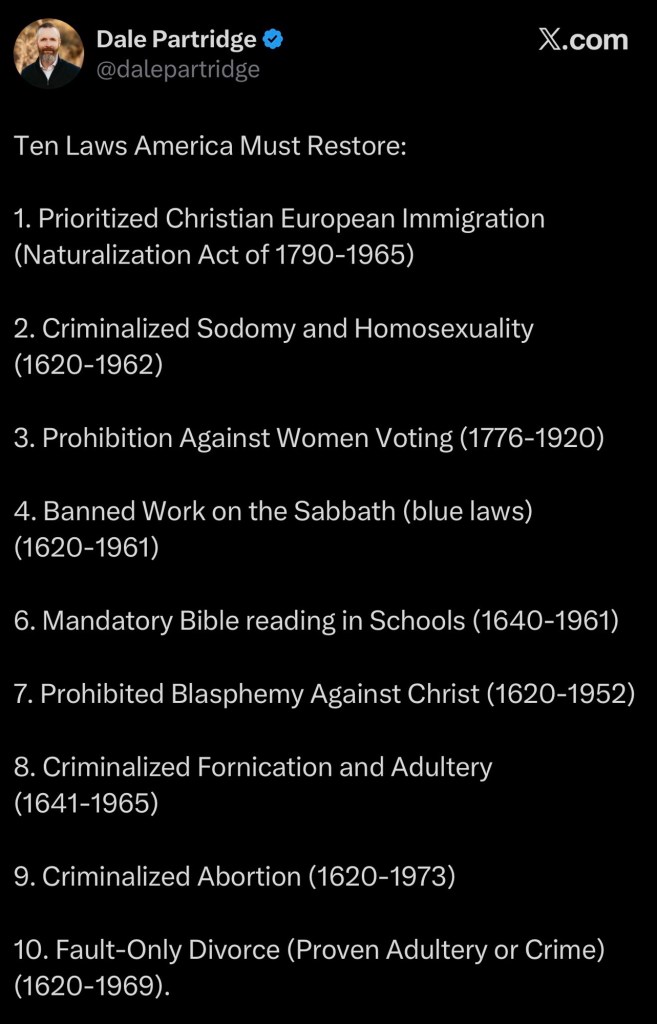Below, I will address each of the proposed “Ten (nine) Laws America Must Restore,” not to defend modern secularism, but to expose why this entire project is built on worldly grandeur rather than biblical wisdom. My hope is to shed some light on those who are using the degradation of our culture to justify a grasp for power and mistake the recovery of lost influence for the advance of Christ’s kingdom.